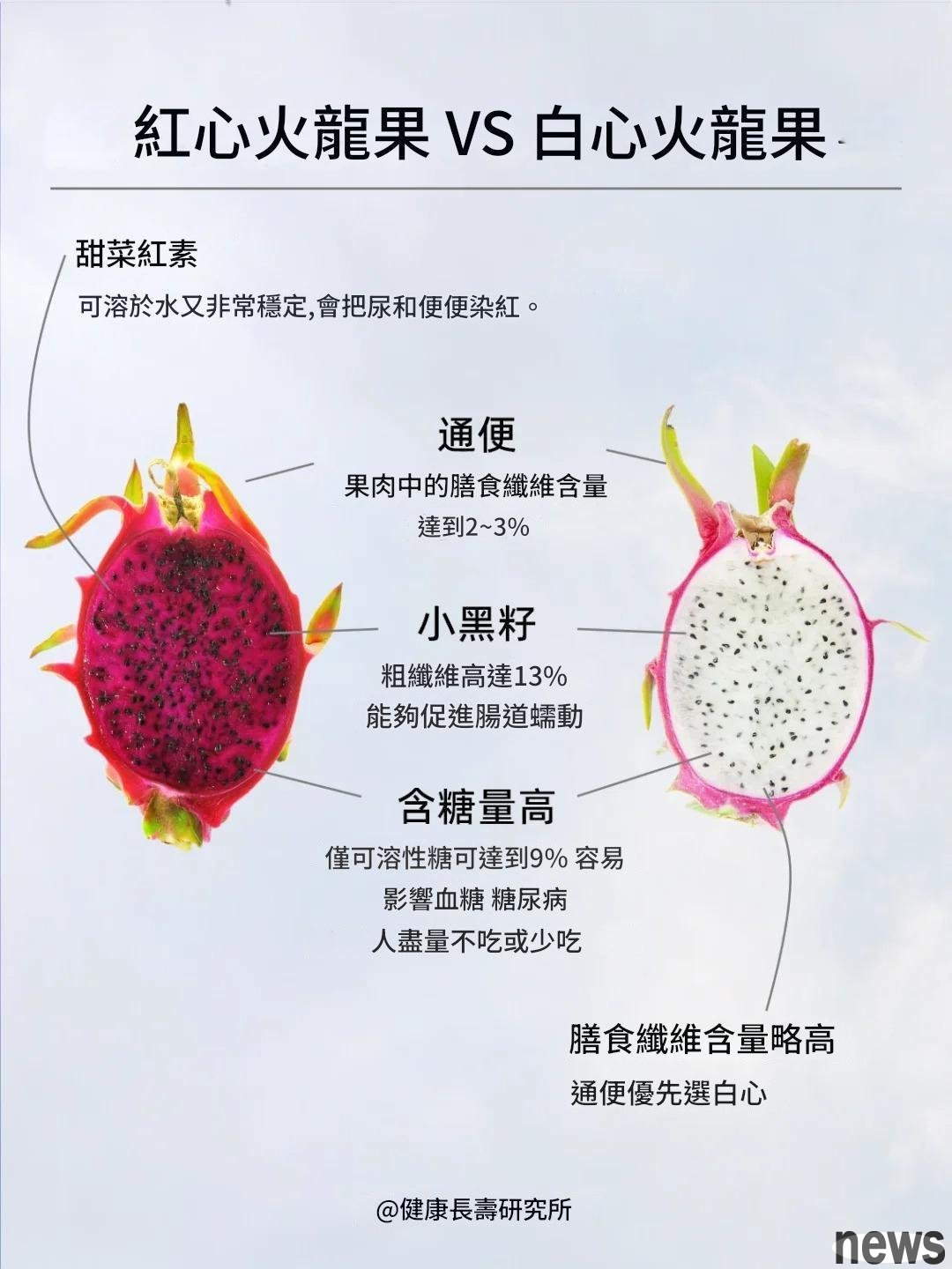 The fire dragon fruit on the market includes two types: red meat and white meat. Generally speaking, except that the red meat has a slightly sweeter sweetness than white meat, what is the difference between the two in nutrition and the effect of helping defecation?