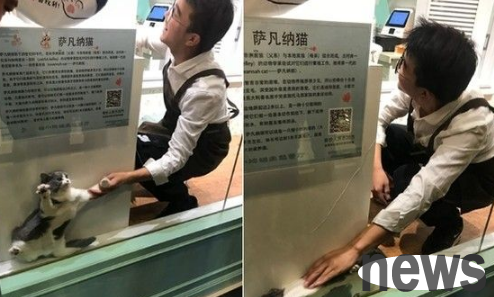 Cats are indeed liquid! There was a gray-white cat in a pet-themed restaurant in Beijing. He seized the opportunity to hide in the small gap between the glass display window and the furniture, squeezing himself into a "piece of cat", and felt so happy. However, this perfect plan was soon discovered by the store clerk, and it had no choice but to use various postures to prevent the fate of being pulled out, and its crazy and vicious appearance made netizens laugh.