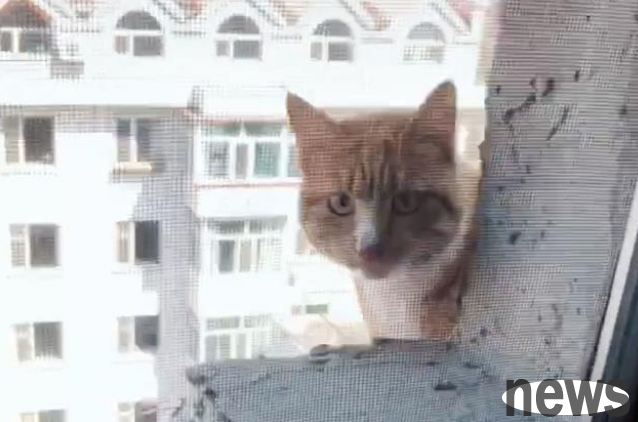 The name of this cat is "Zhaocai". As for why it ran outside the window of the poop collector, the owner said that he was usually afraid that the cat would get bored, so he would deliberately open the window to let him outside for some fresh air.