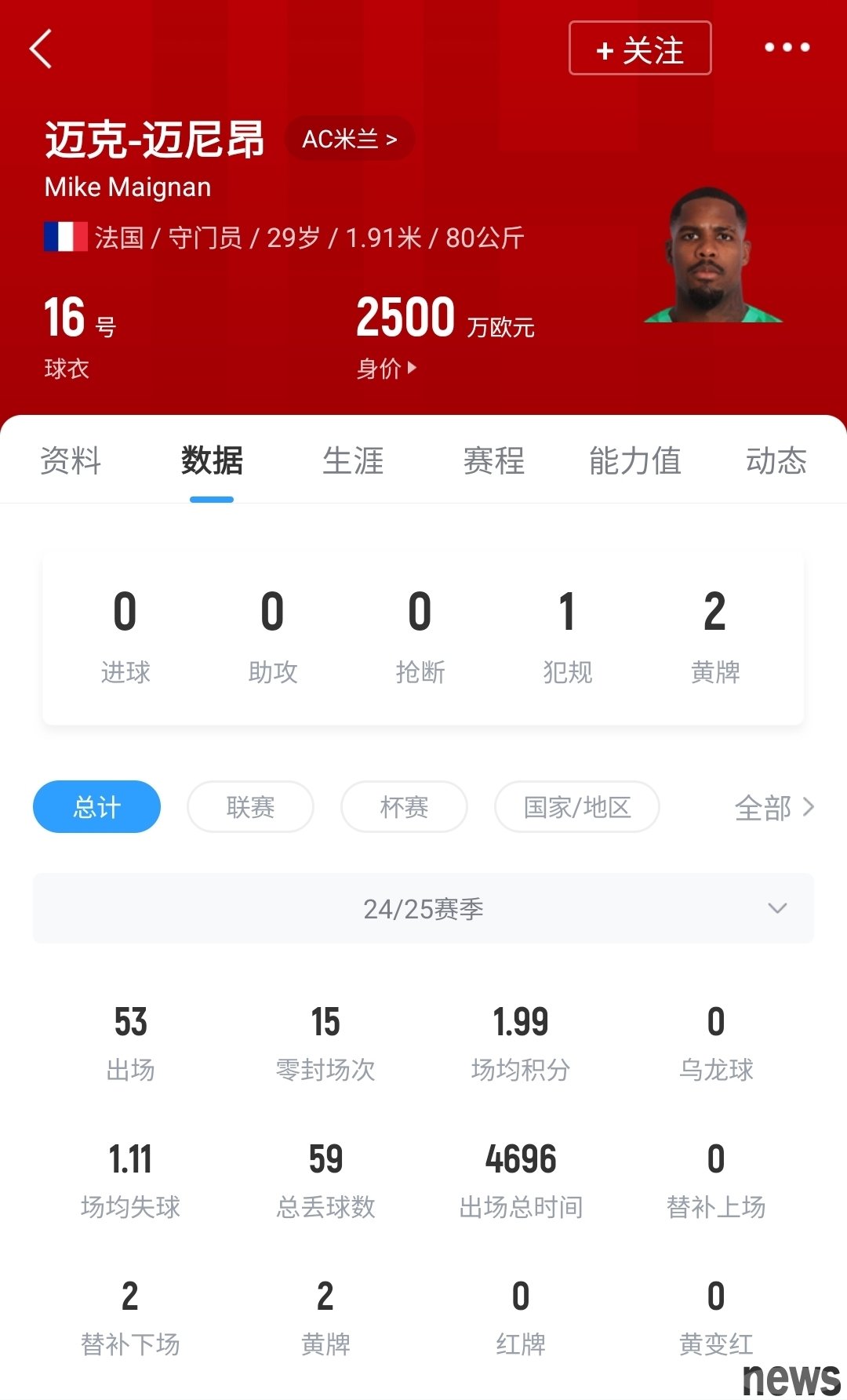 Menion is 29 years old and has only one year left in his contract with AC Milan. Germany is worth 25 million euros. This season, Menion played 53 games for Milan and completed 15 clean sheets.