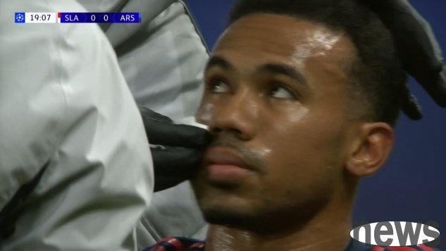In the 18th minute of the Champions League Arsenal vs Slavia Prague match, Gabriel was hit in the face and the game continued after treatment by the team doctor.