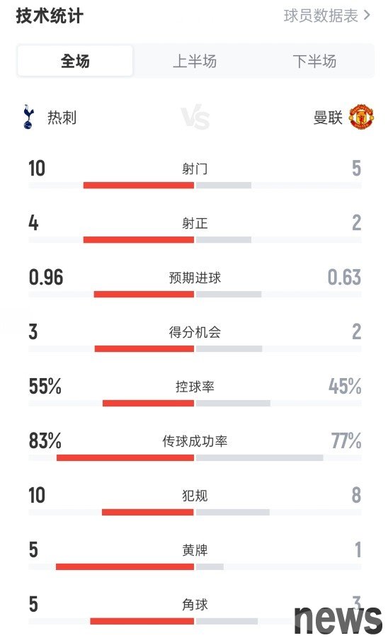 In the 11th round of the 2025-26 Premier League season, Tottenham 2-2 Manchester United at home.